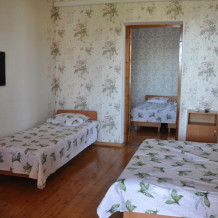 Семейный двухкомнатный со смежными комнатами номер находится на втором этаже. В номере телевизор, кондиционер, совмещённый санузел. На просторном личном балконе находится индивидуальная кухня со всем необходимым для приготовления пищи . После жаркого летнего дня, так приятно отдохнуть выпить бокал вина, пожарить шашлык. Для вечерних посиделок у нас мангальная зона, беседки. Для тех, кто даже на отдыхе, не мыслит своей жизни без интернета - у нас бесплатный Wi-Fi. Возможна организация питания под заказ.