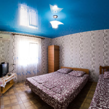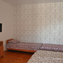 На втором этаже. Номер рассчитан на 3 человека. В комнате кондиционер, совмещённый санузел, телевизор. Индивидуальная кухня на крытом балконе с топчаном. После жаркого летнего дня, так приятно отдохнуть выпить бокал вина, пожарить шашлык. Для вечерних посиделок у нас мангальная зона, беседки. Для тех, кто даже на отдыхе, не мыслит своей жизни без интернета - у нас бесплатный Wi-Fi. Возможна организация питания под заказ.