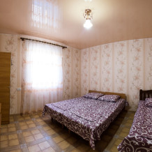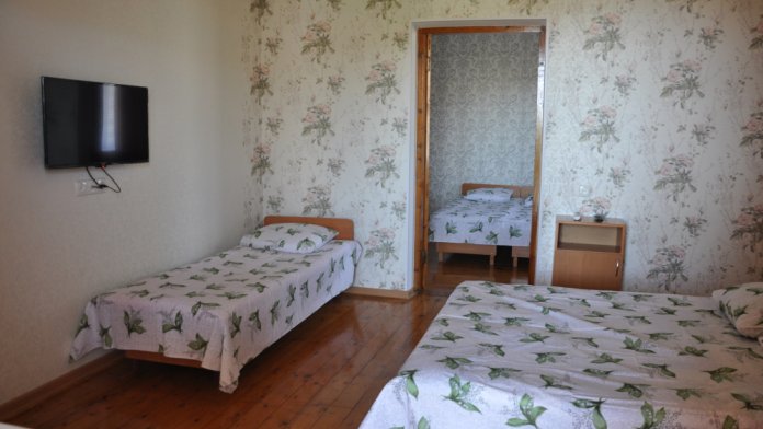 Номера находятся на втором этаже. Номера рассчитаны на 2-4 человек. В каждом номере телевизор, кондиционер, совмещённый санузел. На крытом балконе кухня с большим топчаном на два номера. После жаркого летнего дня, так приятно отдохнуть выпить бокал вина, пожарить шашлык. Для вечерних посиделок у нас мангальная зона, беседки. Для тех, кто даже на отдыхе, не мыслит своей жизни без интернета - у нас бесплатный Wi-Fi. Возможна организация питания под заказ.