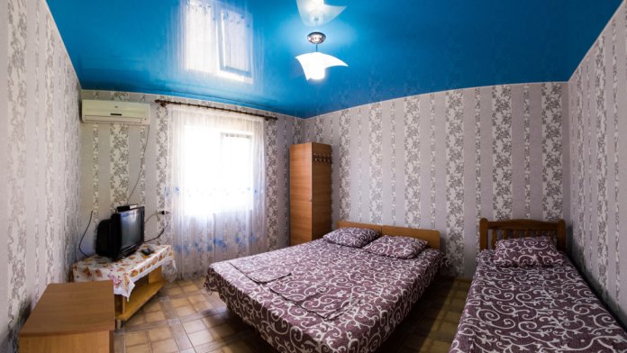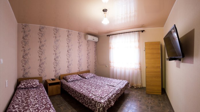 В номер ведёт отдельный, изолированный вход. Номер рассчитан на 3 человек. В номере кондиционер, телевизор, совмещённый санузел. Индивидуальная кухня на крытой веранде с беседкой и топчаном. После жаркого летнего дня, так приятно отдохнуть выпить бокал вина, пожарить шашлык. Для вечерних посиделок у нас мангальная зона, беседки. Для тех, кто даже на отдыхе, не мыслит своей жизни без интернета - у нас бесплатный Wi-Fi. Возможна организация питания под заказ.