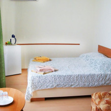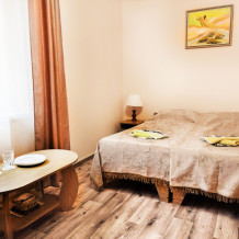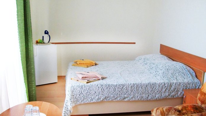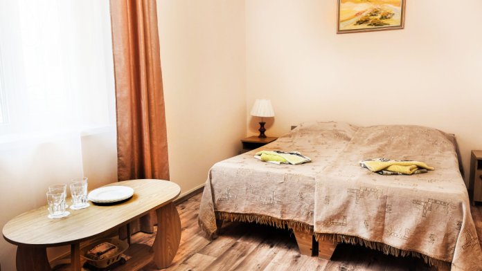 Однокомнатный номер подойдет для тех, кто путешествует вдвоем или для семьи с ребенком. Свободное время можно проводить на террасе. 2 раздельных спальных места превращаются в двуспальную кровать. Возможно установить допместо. Кондиционер, ТВ, холодильник, электрический чайник, сейф, полотенца, туалетно-гигиенические принадлежности, фен, сушилка. Номер расположен в одноэтажном здании. Окна выходят на террасу и зеленый дворик. В жаркий день здесь прохладно. Свой санузел с душем. Горячая и холодная вода круглосуточно. Ежедневная влажная уборка. Смена белья - 1 раз в 5 дней.