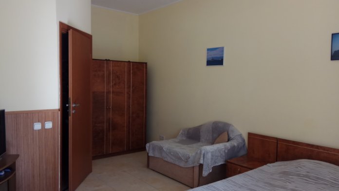 В номере: двуспальная и односпальная кровати, шкаф, телевизор, журнальный стол, спутниковое ТВ, Wi-Fi, кондиционер.