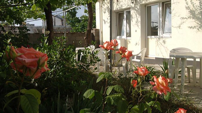 Гостевые номера - это новое одноэтажное здание в частном секторе с собственным зелёным двориком, где вы можете расположиться за столиками в тени фруктовых деревьев и винограда для семейного ужина, приготовленного собственноручно на кухне, а также воспользоваться мангалом.