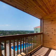 Улучшенный, отдельный вход, в номере совмещённый туалет и душ, горячая вода круглосуточно, одна двухспальная кровать с ортопедическим матрасом, раскладной диван, необходимая мебель, постельное бельё, ТВ, WiFi free, минибар-холодильник, кондиционер, большая терраса с обширным видом.