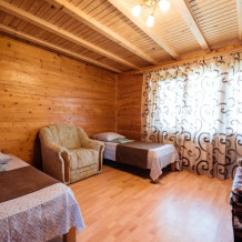 Стандарт, отдельный вход, в номере совмещённый туалет и душ, горячая вода круглосуточно, четыре односпальные кровати с ортопедическими матрасами, необходимая мебель, постельное бельё, ТВ, WiFi free, терраса с обширным видом.