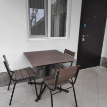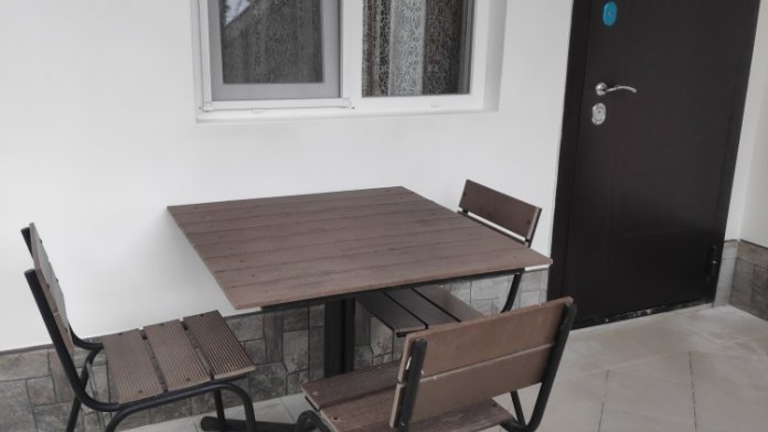 Номер для отдыха вдвоем или семьей с 1 ребенком. Номер состоит из спальной зоны и зоной с оборудованной всем необходимым кухней. Номер с большим собственным балконом, на котором имеется сушилка для белья и стол с лавками.