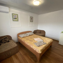 В номере: 2-х спальная кровать, диван, шкаф-купе, комод, зеркало, телевизор, холодильник. Туалет и душ в номере. Кондиционер. Общий балкон. Сушилка для белья.