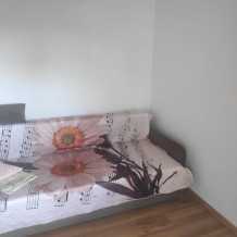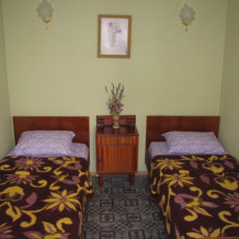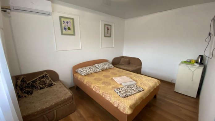В номере: односпальная кровать, диван-малютка, тумбочка, шкаф, зеркало, холодильник, электрочайник, вентилятор. Два туалета и душ общие на 5 номеров (10 человек). Сушилка для белья.