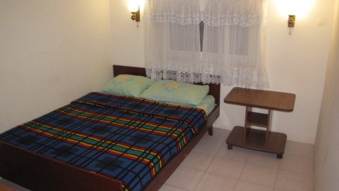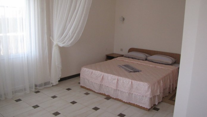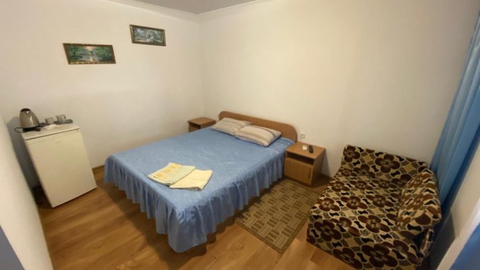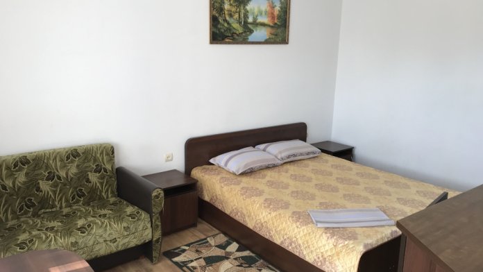 В номере: односпальная кровать, диван-малютка, тумбочка, шкаф, зеркало, телевизор, холодильник, электрочайник, вентилятор. Сушилка для белья. Два туалета и душ общие на 5 номеров (10 человек).