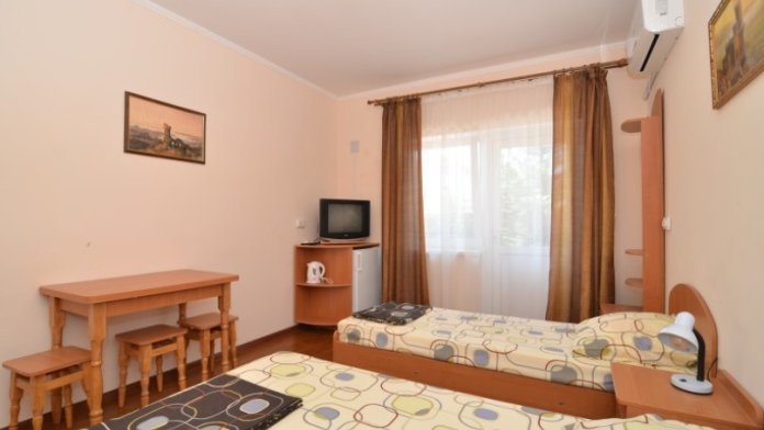 Гостевой дом «Диана» находится всего в 5 минутах неспешной ходьбы от просторных песчаных пляжей Заозерного. Корпус дома расположен на частной ограждённой территории. Двор имеет приятный и аккуратный внешний вид, его украшают живописные клумбы цветов и зелёные насаждения. Здесь есть отдельная зона отдыха с мангалом, столами и стульями. Двор и сам гостевой дом содержатся в идеальной чистоте, за которой тщательно присматривают. Для размещения отдыхающих домовладение предлагает 3-местные номера. Каждый номер полностью укомплектован качественной мебелью и необходимой техникой.