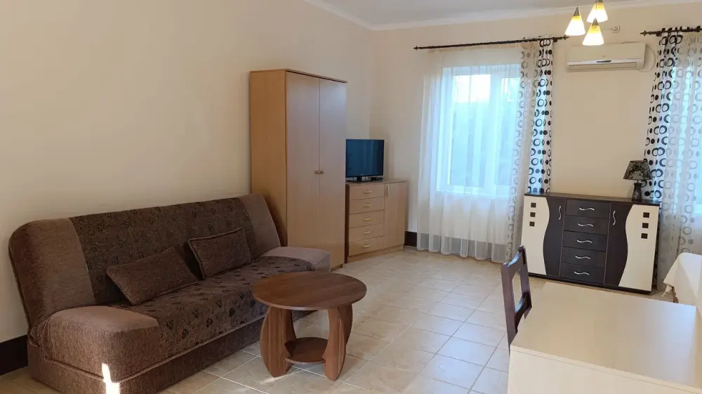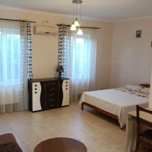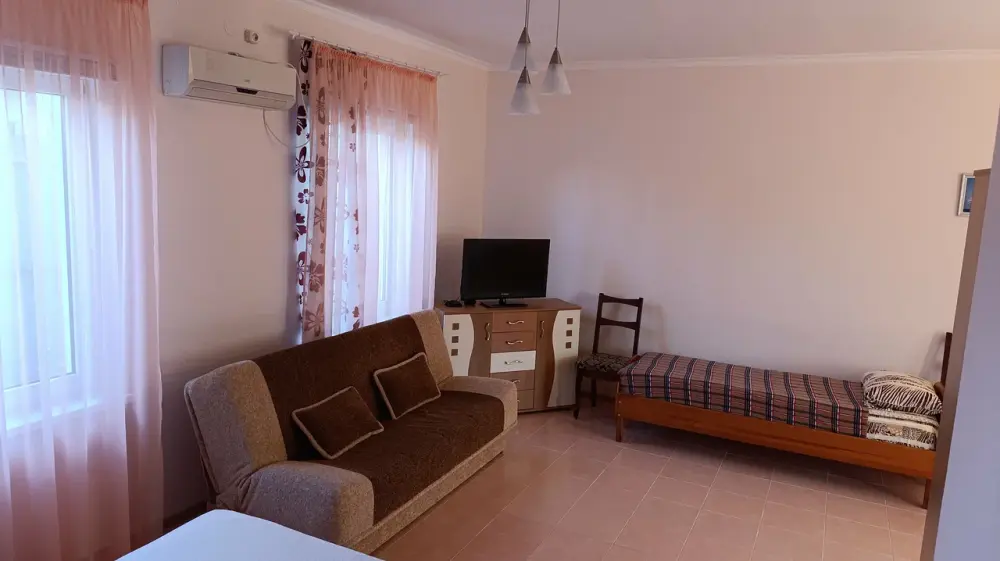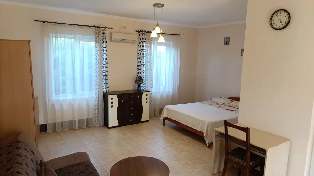 Комфортабельные, уютные и современные 2, 3, 4-местные номера со всеми удобствами: кондиционер, холодильник, телевизор, спутниковое ТВ, WI-FI, горячая холодная вода круглосуточно. В каждом номере отдельный санузел с индивидуальным бойлером. У каждого номера своя обеденная зона на веранде.