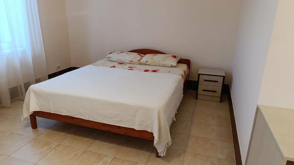 На 2 этаже - двухкомнатные Люксы с видом на море с общего балкона. У каждого Люкса - своя мини-кухня с электрическим чайником и микроволновкой. Люкс рассчитан на 6 человек (2 двуспальные кровати, большой диван на 2 места), журнальный стол, двухкамерный холодильник, кондиционер, в санузле - полноценная ванна, свой бойлер для круглосуточного подогрева воды на 100 л. В спальне - туалетный стол, платяной шкаф, спутниковое ТВ.
