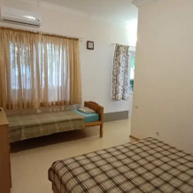 В номере: одна двуспальная и одна односпальная кровати (170 см), телевизор, вентилятор, двухкамерный холодильник, обеденная зона на веранде со столом и стульями. Удобства в номере с душем и индивидуальным бойлером.