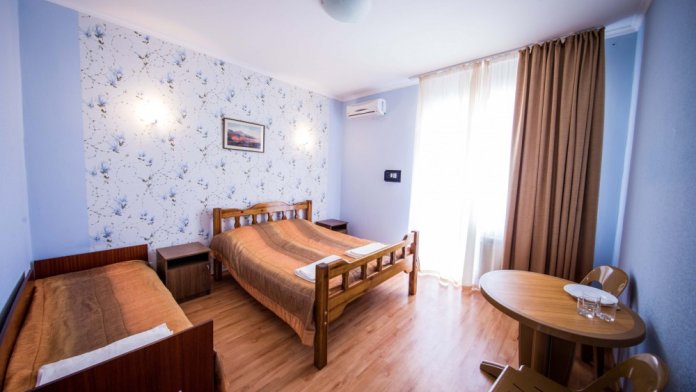 Номер на 2 этаже с балконом, на 1 этаже без балкона (сушилка для белья за окном ). Ежедневная влажная уборка номера производится с применением дезинфицирующего средства «DESO», включает дезинфекцию всех контактных поверхностей (пульт управления от телевизора и кондиционера, дверные ручки, стирку наматрасников, обработка тканевых поверхностей парогенератором), проветривание номера и обеззараживание воздуха рециркулятором.