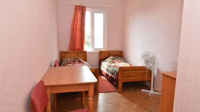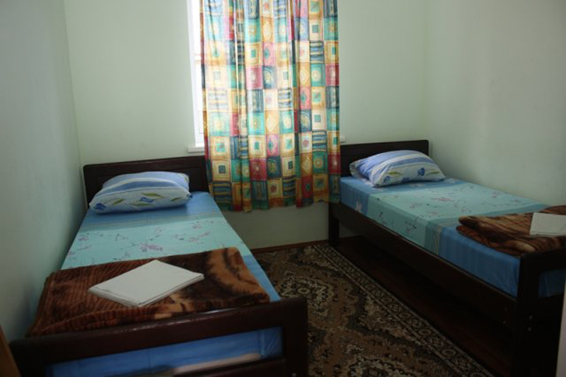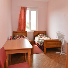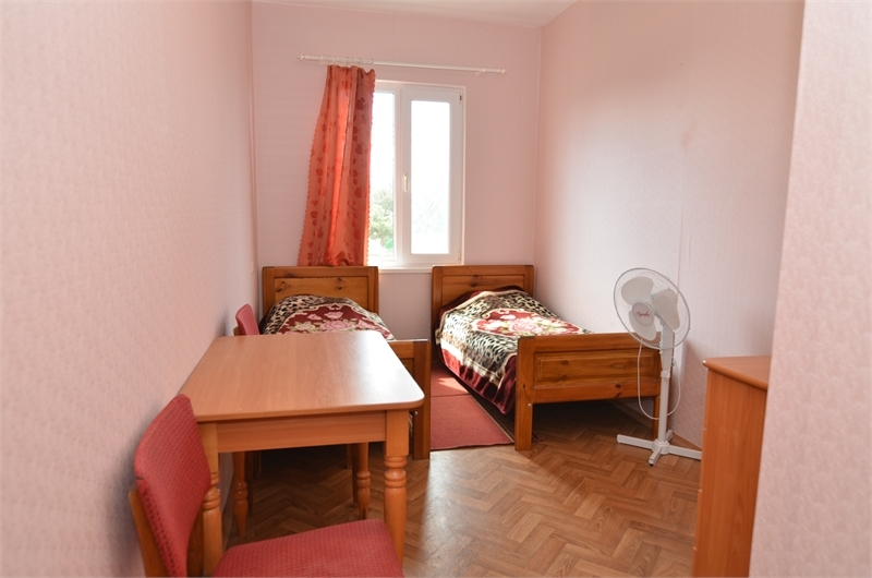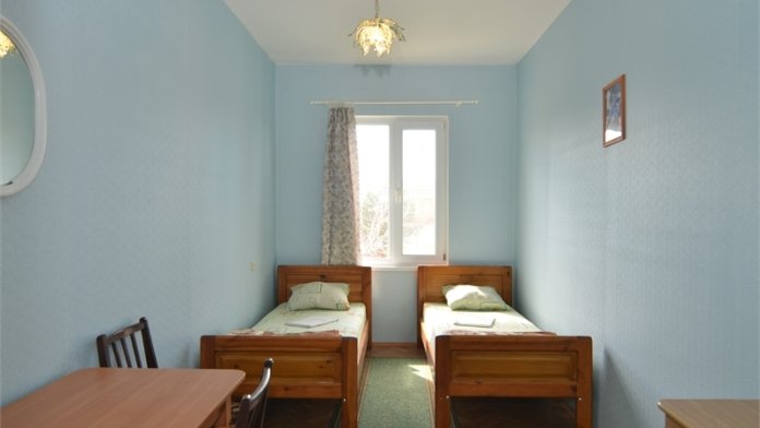 В номере: односпальные или двуспальная кровати, стулья, стол, комод, вешалка, зеркало, вентилятор, интернет, балкон (общий).