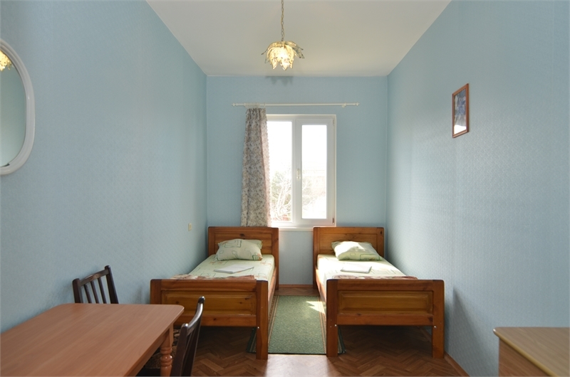 В номере 2 односпальные кровати, стулья, стол, комод, вешалка, зеркало, вентилятор, интернет, балкон (общий).