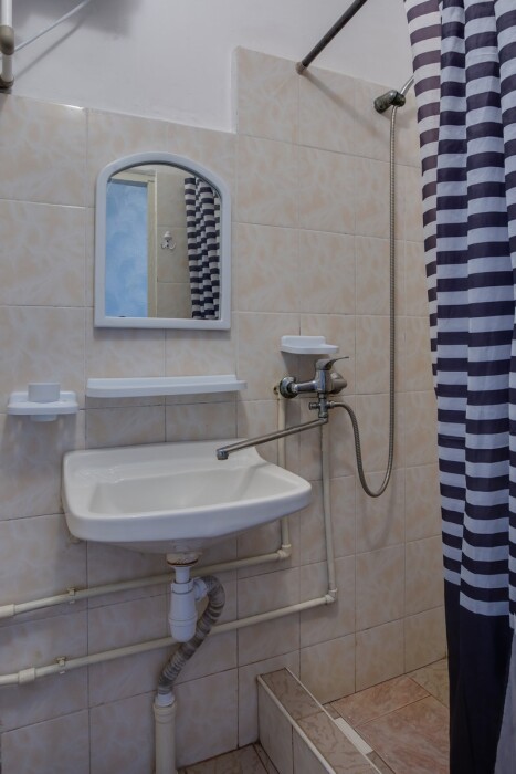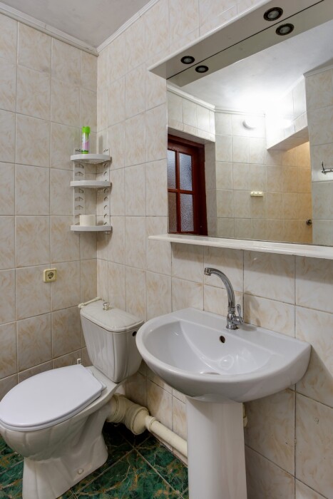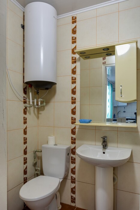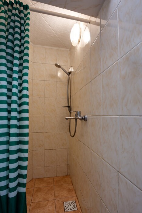 В санузле: душ, туалет, умывальник (совмещенные), гигиенические принадлежности, полотенца, холодная и горячая вода – постоянно.
