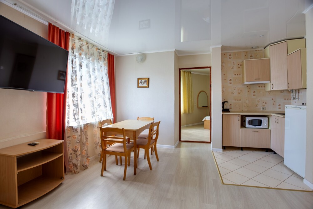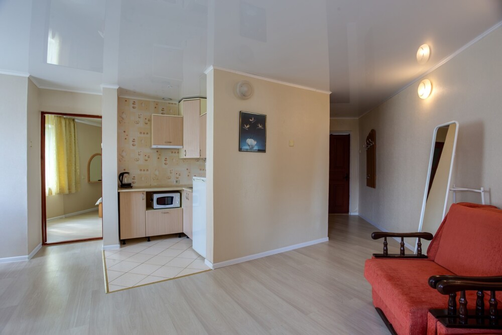 Улучшенный двухкомнатный номер с лоджией до трёх человек (есть 2 доп. места - кресло-кровать - за дополнительную плату - 500 р.) Дети до 6-ти лет без места — ком. усл. + 150 руб. в сутки. Раскладушка — 200 руб. в сутки.