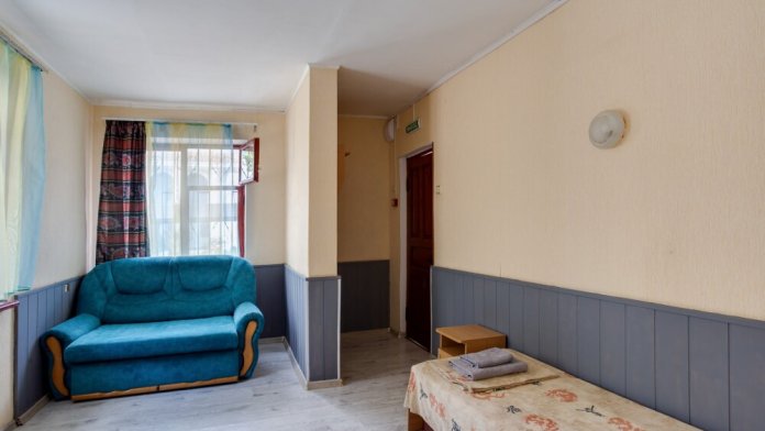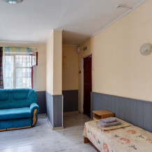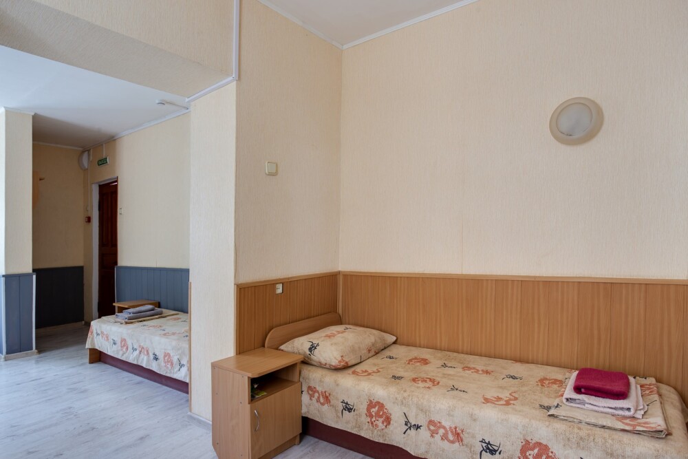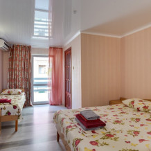 Улучшенный двухкомнатный номер с лоджией до трёх человек (есть 1 доп. место - за дополнительную плату - 500 руб.). Дети до 6-ти лет без места — ком. усл. 150 руб. в сутки. Раскладушка - 200 руб. в сутки.