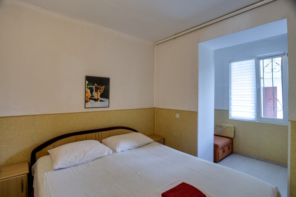 Во второй комнате: две односпальных кровати, шкаф, две тумбочки, телевизор (спутниковое ТВ), кондиционер.