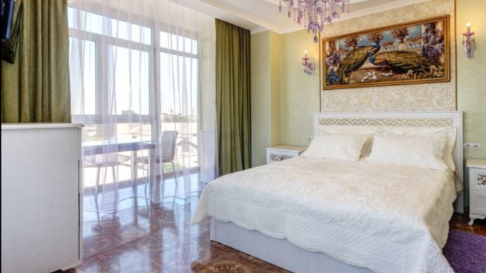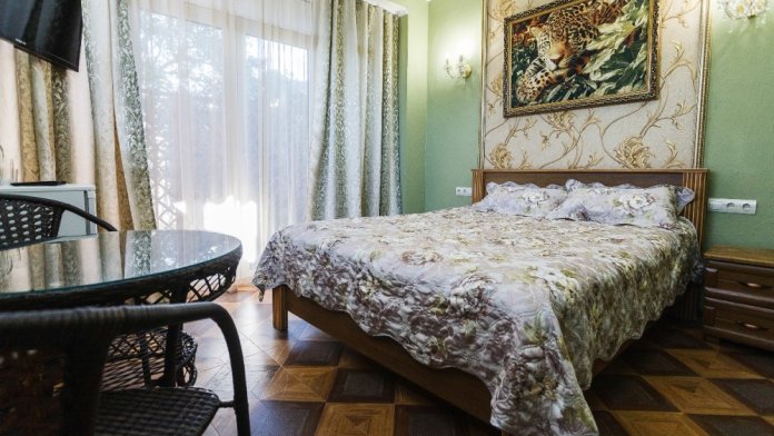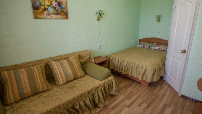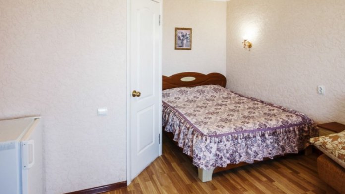 К услугам гостей 22 комфортабельных, современных номера категорий Люкс и Стандарт, выполненные в оригинальном дизайнерском оформлении, все они оборудованы собственной ванной комнатой с феном, а также телевизором с плоским экраном, холодильниками и бесплатным доступом в интернет. Вид из окон корпусов на зеленый двор и окрестности поселка. Вид с 4 этажа - зоны отдыха и бара - на море и грязевой лиман.