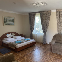 Две одинаковые комнаты со сдвинутыми односпальными кроватями и с раскладными креслами. Телевизор в каждой комнате. Есть холодильник, чайник и СВЧ печь.