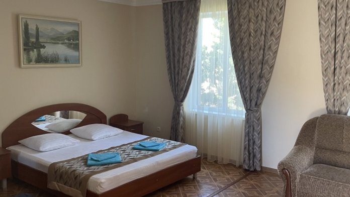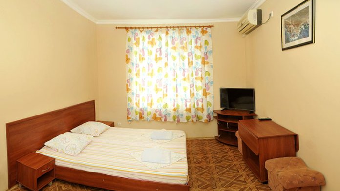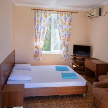 Однокомнатный номер с удобствами (две односпальные кровати, 1 раскладное кресло, тв, кондиционер, санузел, душ, холодильник)