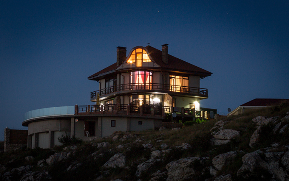 Дом расположен на краю скалы с прекрасной круговой панорамой на все стороны света.