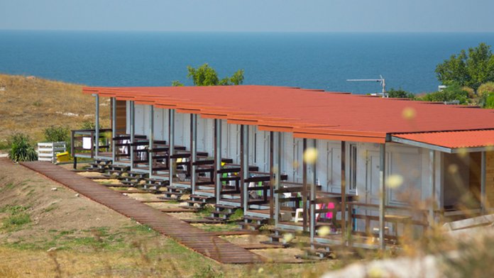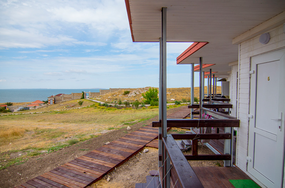 База отдыха находится на берегу Азовского моря рядом с населенным пунктом Золотое. Он расположен на Крымском полуострове. К услугам гостей собственный пляж с кафе и современные номера с кондиционером.