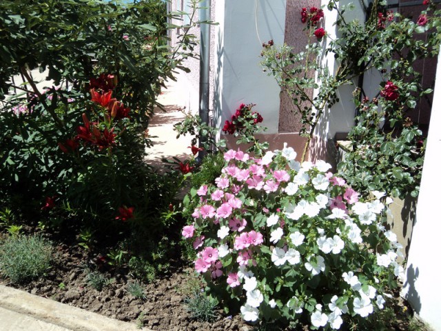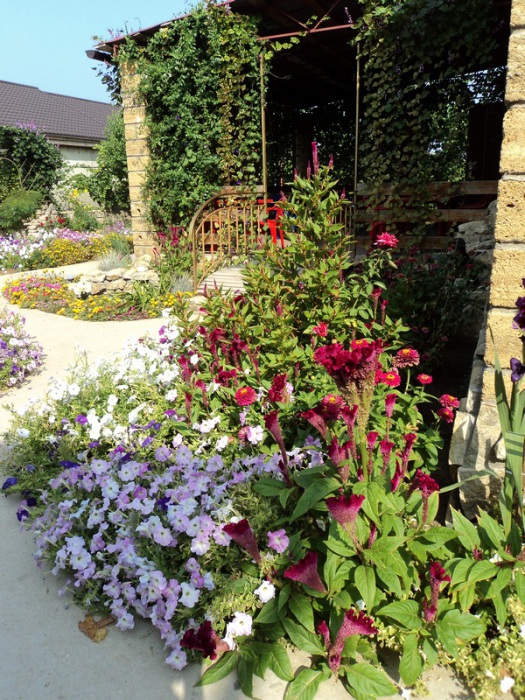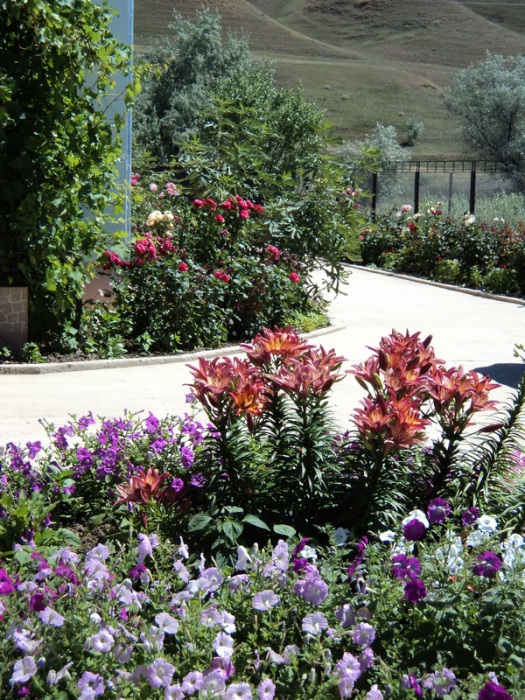 На территории усадьбы растет множество цветов: 30 кустов роз, лилии, гладиолусы, петунии, флоксы, клеома, монарда и др.