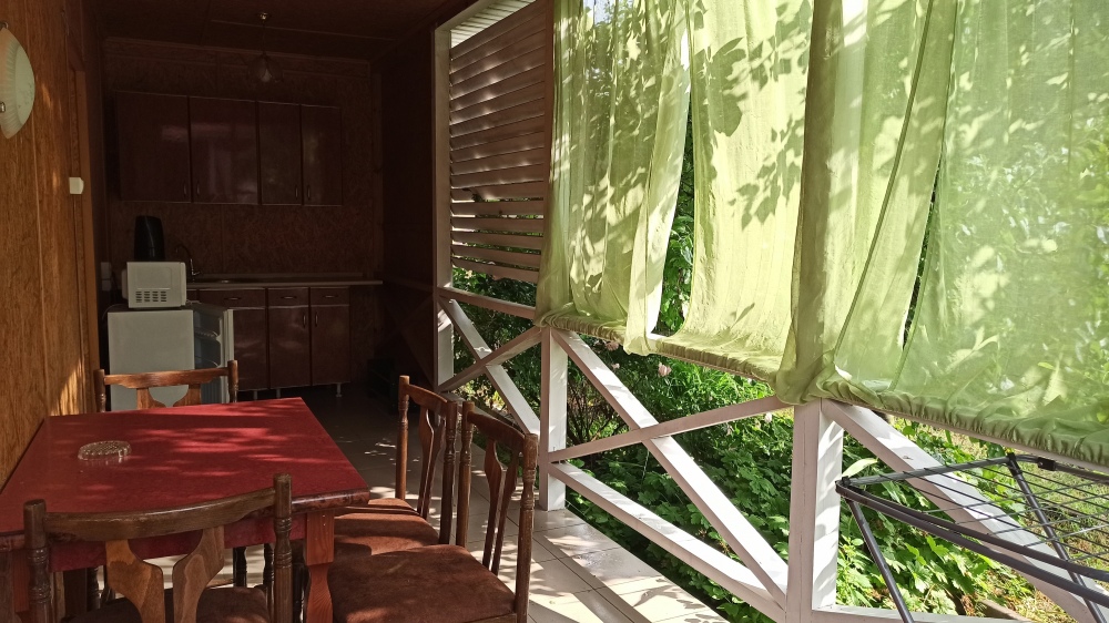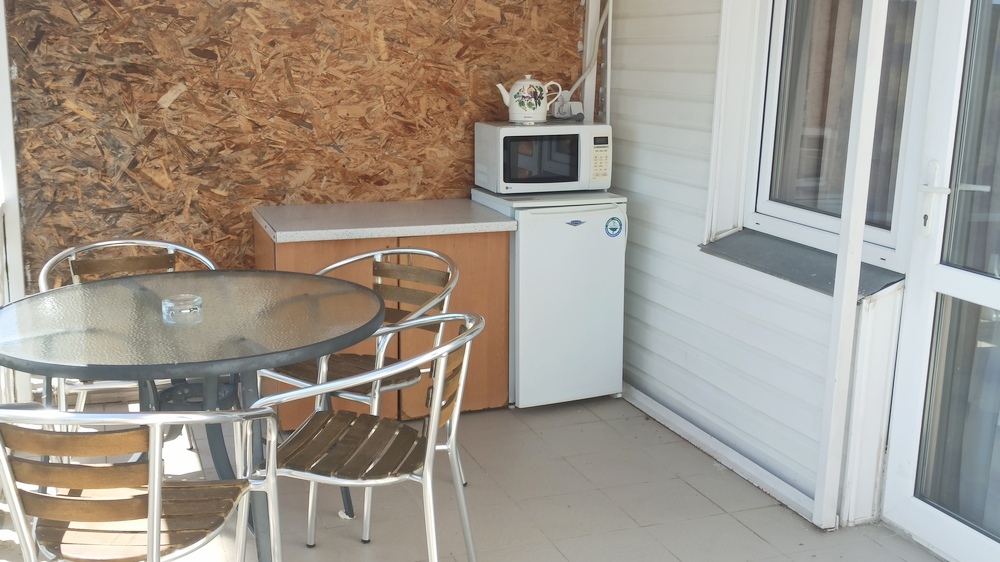 Во всех номерах «апарт-шале»: собственная веранда с шезлонгами и другой мебелью для отдыха, миникухня (обеденная зона, мойка, электрочайник, холодильник, микроволновая печь, столовая посуда). Предоставляется в аренду мультиварка.