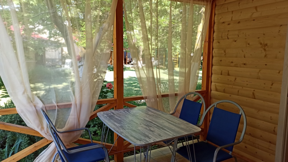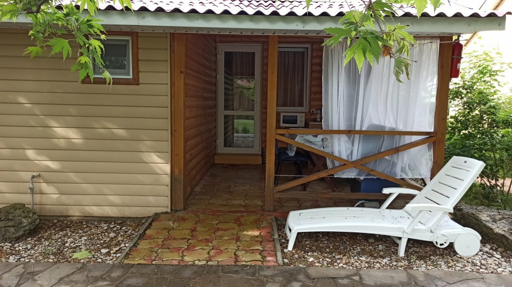 Одноэтажные коттеджи из дерева с 2х и 3х местными номерами, с отдельными выходами во двор, с мебелью для отдыха.