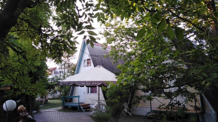 Свой отдельный «финский» дом - двухэтажный дом из дерева с двумя 2-местными (второй этаж) и одной 3х местной спальней (первый этаж). В доме: холл, холодильник, душ, туалет, телевизор. Перед домом площадка с летней мебелью для отдыха под большим зонтом. Дом на 7 мест, можно доп.место.