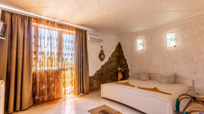 На территории гостиницы расположен бар, бильярд, автостоянка, мангалы, качели, детская площадка , беседки. Мы рады предложить Вам комфортабельные и уютные номера для проживания и отдыха. Все номера просторные и отличаются дизайном (не повторяются).