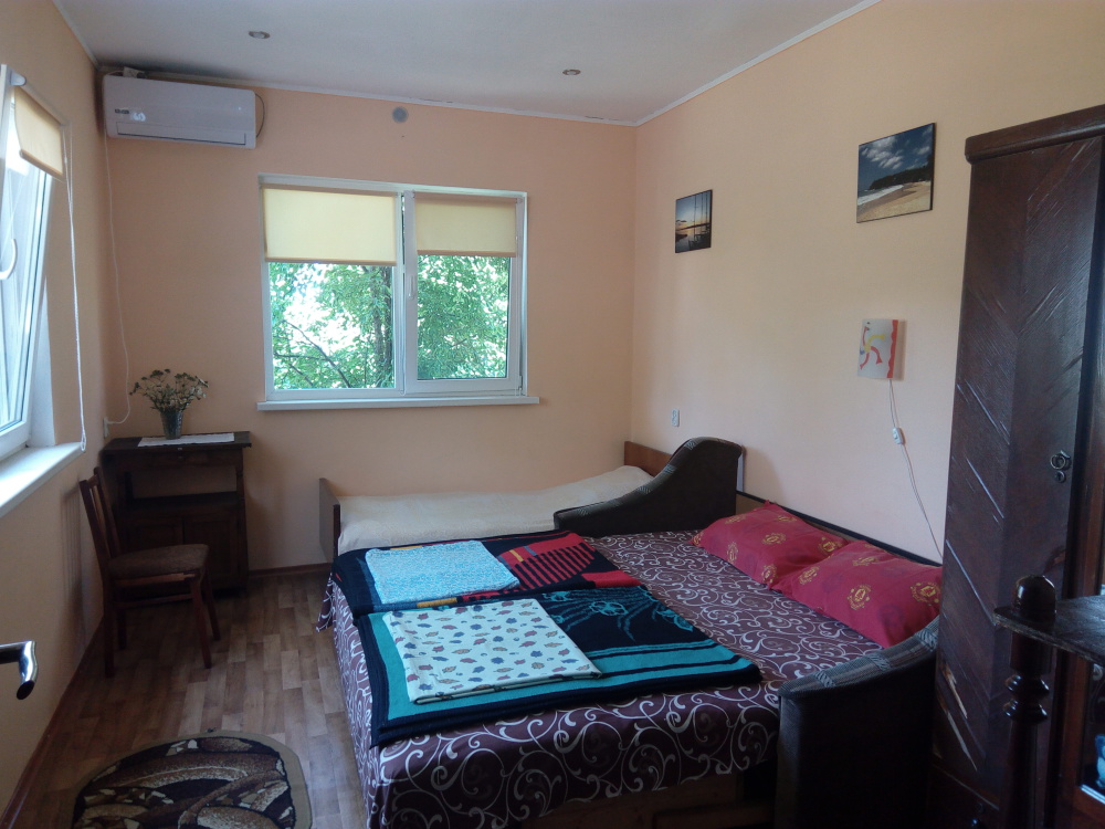 Две раздельные 3-местные комнаты со своим санузлом (туалет, душ с горячей водой) и летней кухней (все необходимое для приготовления и приема пищи). Есть холодильник, СВЧ-печь, телевизор. Мангал (казан, шампуры, решетка), просторная зеленая территория.