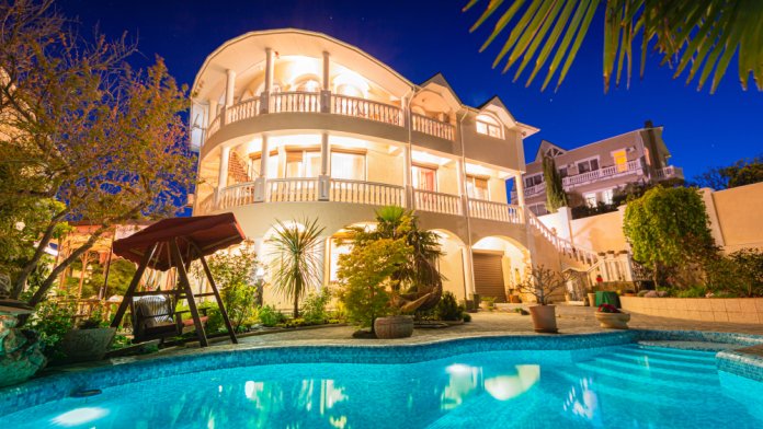 Предлагаю отдохнуть в 4х комнатных апартаментах,на третьем,самом видовом этаже. с полноценной ,хорошо оборудованной кухней-столовой. Со всех окон открывается панорамный вид (на море.горы.бассейн.зеленую зону) Двор закрытый,в саду много экзотических растений. Уютно и чисто. Двор оборудован местом отдыха с ротанговыми шезлонгами у бассейна,ротанговыми коконами.гамаком.прудиком с фонтаном и рыбками,беседкой ,мангалом и скамеечками .( все ручной работы). Также предлагаем питание комплекс и на заказ. По требованию. Парковка во дворе со своим пультом от автоматических ворот под камерами видеонаблюдения. Тишина , спокойствие и чистота везде. До моря 250 метров по прямой. До оборудованных пляжей с шезлонгами.зонтиками и инфраструктурой 1500 метров. В 50 метрах от дома через каждые 30 минут проходит рейсовый автобус.В шаговой доступности продовольственный магазин,где можно купить все необходимое.Общей зоной отдыха пользуется еще одна семья до 4 гостей. (со своим входом с другой стороны участка и своей парковкой). Поэтому тишина и спокойствие вашего семейного отдыха. К каждому гостю относимся с любовью и уважением.