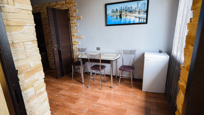 Среди прочих удобств - общая кухня для самостоятельного приготовления со всем необходимым (микроволновая печь, плита чайник, посуда) с зоной отдыха.