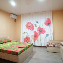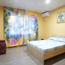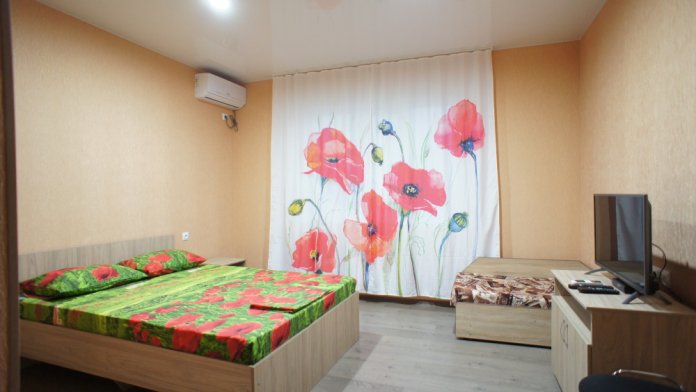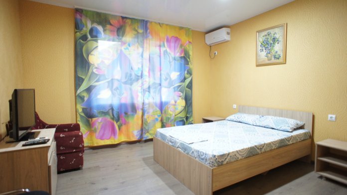 4-х местный Семейный номер 20 кв.м. -двуспальная кровать, и 2 односпальных , шкаф-купе, тумба под тв , 2 тумбочки, телевизор, кондиционер, спутниковое тв, санузел (душ, унитаз, раковина).