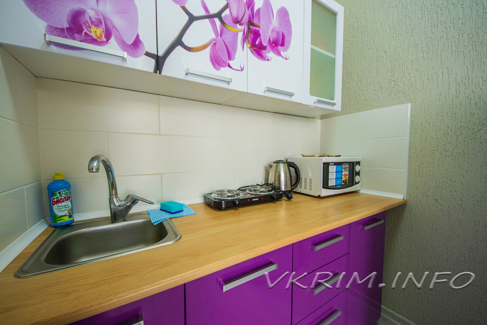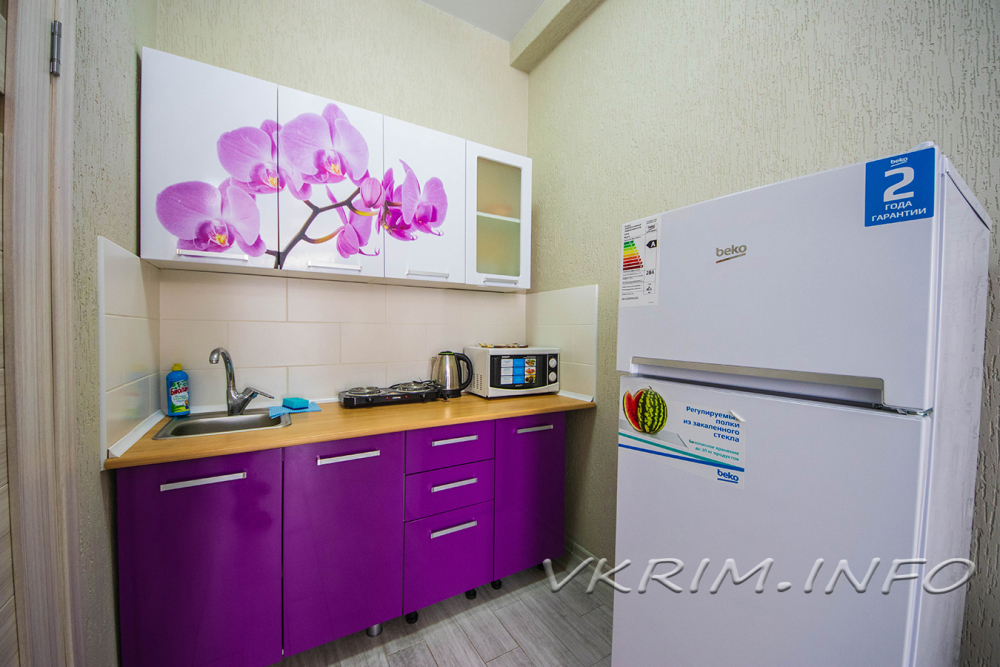 • Имеется небольшой кухонный уголок, где вы найдете холодильник, микроволновку, посуду.