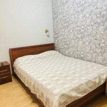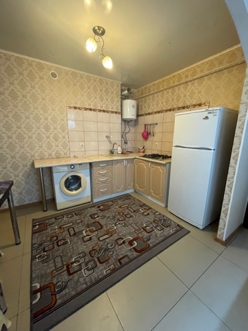 В номере комфортабельная кухня в которой есть холодильник,кухонный гарнитур,стиральная машинка ,газовая плита,раковина,столовая посуда, обеденный стол и стулья.В номере есть: кондиционер, телевизор, шкаф, зеркало, душевая кабина,умывальник, туалет.