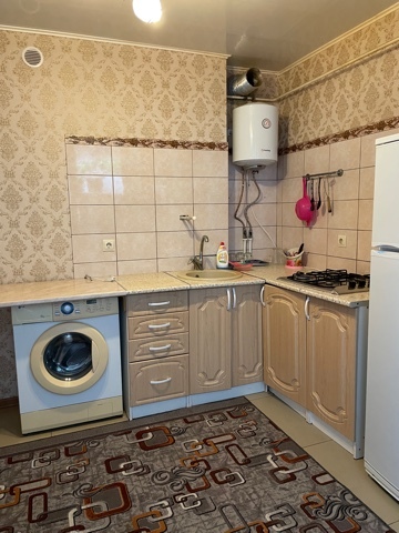 В номере отдельная комфортабельная кухня в которой есть холодильник,кухонный гарнитур,газовая плита,стиральная машина,раковина,столовая посуда, обеденный стол и стулья