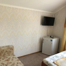 В номере комфортабельная кухня в которой есть холодильник,кухонный гарнитур,газовая плита,раковина,столовая посуда, обеденный стол и стулья.В каждом номере обязательно есть: кондиционер, телевизор, шкаф, комод, зеркало, душевая кабина,умывальник, туалет.