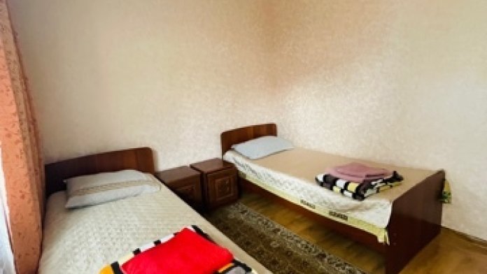 в гостином дворе « Москвичка « 2 трёхместных номера ,к каждому номеру есть своя зона отдыха.на территории 2 душа и 2 сан.узла ,горячая и холодная вода подаётся круглосуточно,также есть общая комфортабельная кухня,в которой можно приготовить завтрак ,обед и ужин.В наличии стиральная машинка.В каждом номере есть вентилятор,шкаф,телевизор.