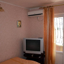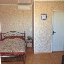 У нас Вы можете отдохнуть в однокомнатных и двухкомнатных номерах (стандарт) со всеми удобствами. Все номера оснащенные современной мебелью: мягкая мебель, диваны, кровати, шкаф, ТВ, а также сплит-системой, кухонной зоной, холодильником, мультиваркой и микроволновкой. В стоимость номера входит: проживание, посещение пляжа, пользование мини-кухней, мангалом, шампурами, гладильной доской, утюгом, интернетом Wi-Fi, стиральной машинкой, детской кроваткой. Все номера имеют прекрасный вид на море.