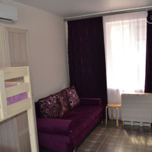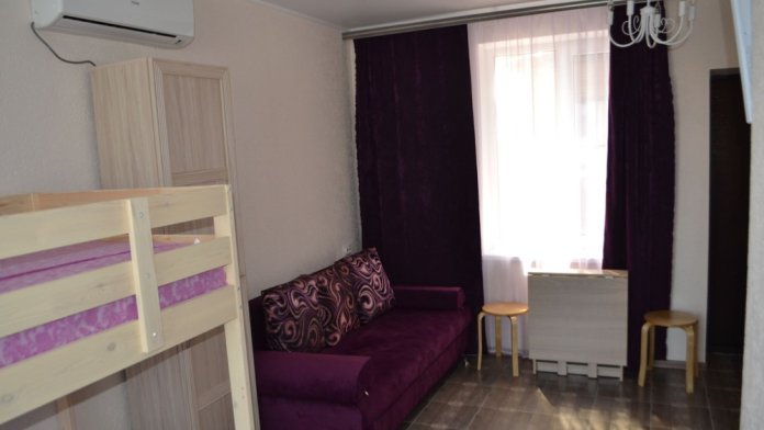 Однокомнатный номер студия, 4-х местный, в номере раскладной двухспальный диван и двухъярусная кровать, ТВ, сплит, своя кухня, бесплатный wi-fi. В номере возможно установить дополнительно раскладную кровать или детскую кроватку.