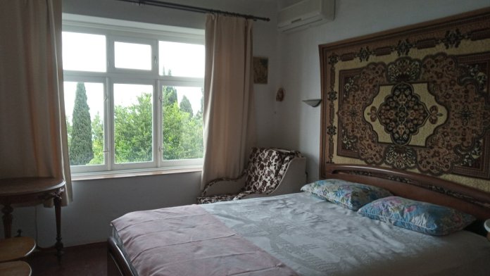 На первом этаже две комнаты с отдельным входом с улицы (в одной комнате одна широкая двуспальная кровать; во второй - двуспальная кровать, полуторный диван).
