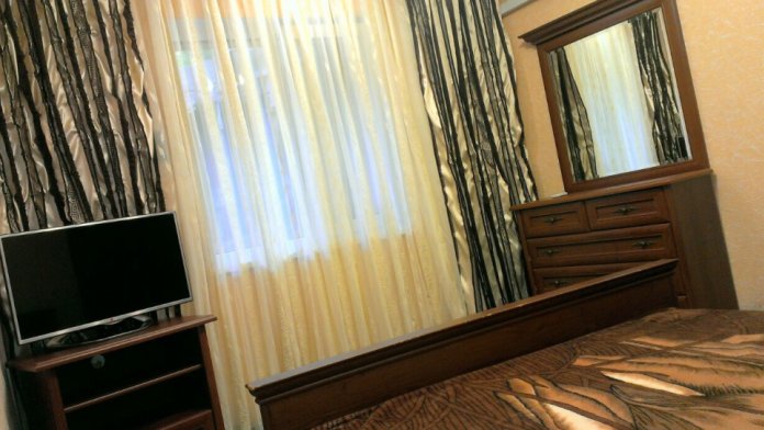 Это 4-этажный коттедж, 1 этаж - гараж, 2 этаж - сдается под ключ (с двориком, мангалом), 2 комнаты раздельные, 6 спальных мест, в одной двуспальная кровать, в другой двуспальная кровать и диван(большой раскладывающийся), в каждой комнате кондиционер, телевизор.
