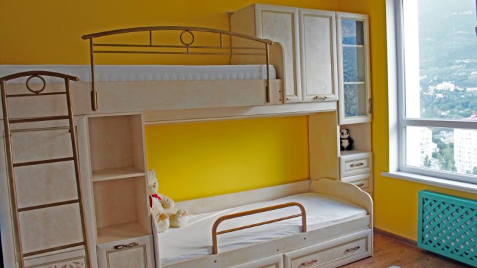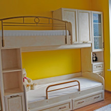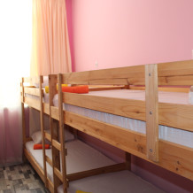 • большой диван раскладной (гостиная), 1 двухярусная кровать, раскладная кровать (по запросу), кресло кровать.