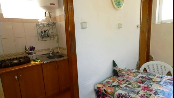 Комната разделена декоративной перегородкой на детскую и родительскую зоны. Кондиционер, телевизор, стиральная машинка, утюг. Оборудованная кухня, санузел, обеденная терраса.