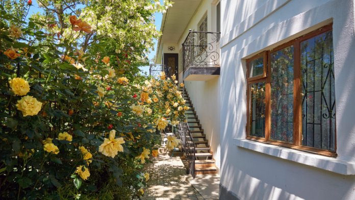 Зелень и цветы дарят наслаждение вечерней прохладой тенистого дворика.